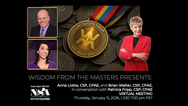 Our co-founding NSA Northern California President, Patricia Fripp, CSP, CPAE, is a Hall of Fame keynote speaker, three-time Cicero Speechwriting award winner, executive speech coach, and creator of FrippVT Powerful, Persuasive